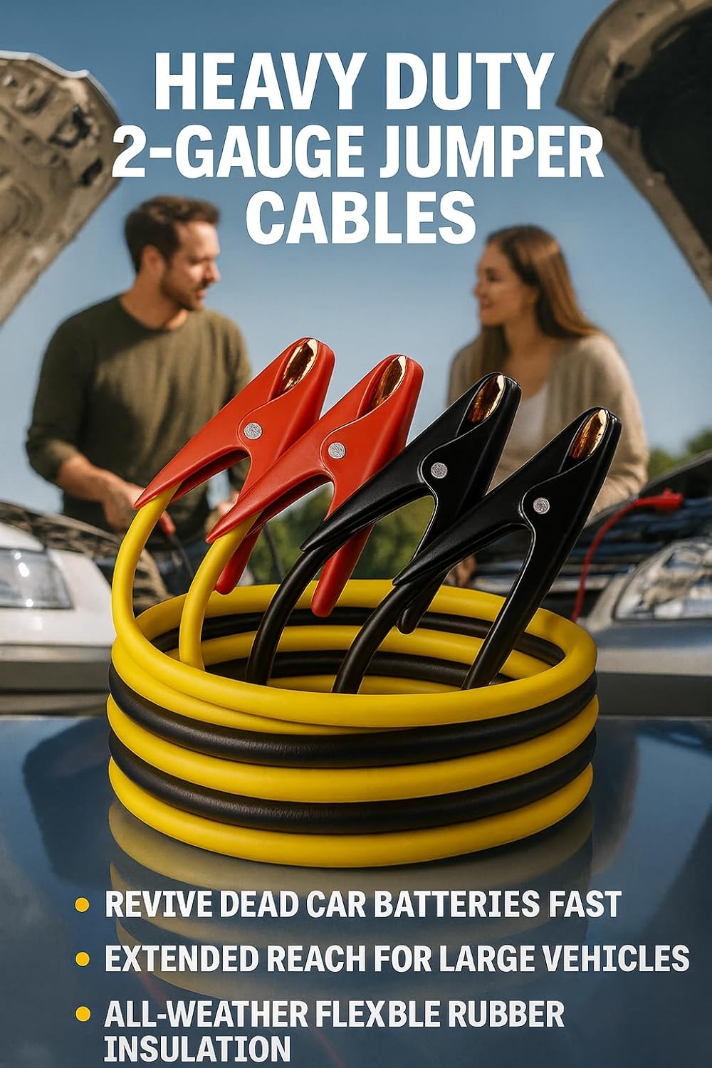 HEAVY DUTY POWER – This 2 gauge, 20 ft booster cable set delivers 350 amps of reliable starting power, designed to handle both 12V and 24V vehicle systems with confidence.UNIVERSAL COMPATIBILITY – Suitable for a wide range of vehicles, including cars, SUVs, pickup trucks, vans, RVs, boats, farm tractors, diesel trucks, and light-to-medium duty equipment.SECURE CONNECTIONS – Equipped with extra heavy-duty coated clamps, these cables ensure a strong grip and improved conductivity for fast, safe jump starts every time.ALL-WEATHER FLEXIBILITY – The rugged rubber insulation remains flexible down to -40°F, making these cables dependable even in harsh winter conditions.TANGLE-FREE DESIGN – Built with durable rubber jackets that resist tangling and kinking, these booster cables deploy easily and store neatly for quick, hassle-free use.LONG-LASTING DURABILITY – Constructed with copper and aluminum conductors and weighing 8.5 lbs, these cables are built tough with black/red rubber insulation for years of reliable service. ETL certified.