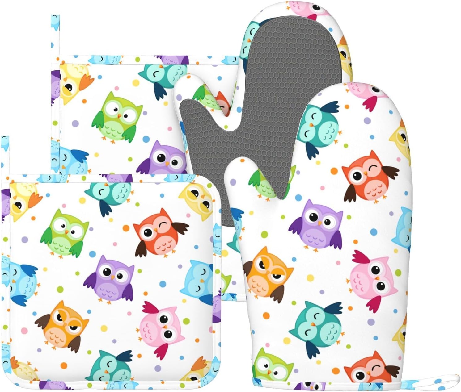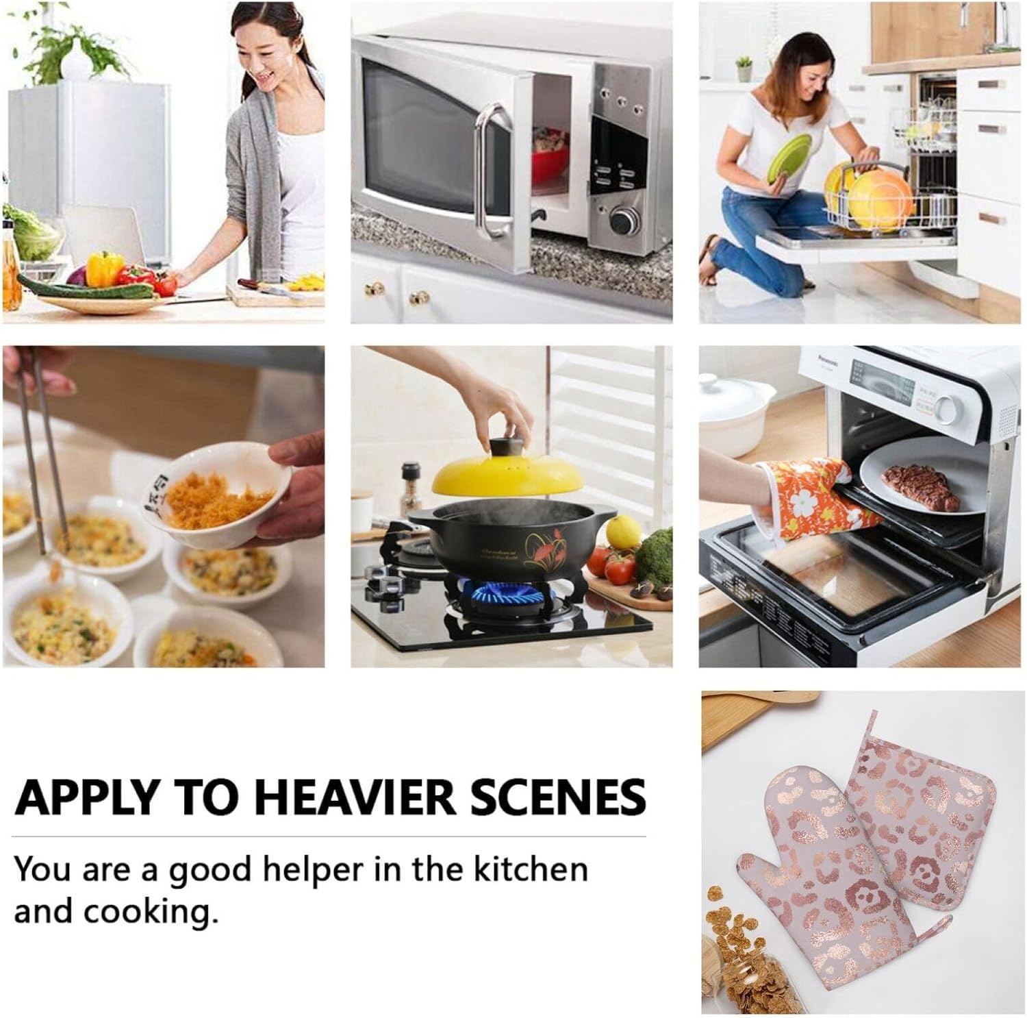 Package includes: You will get 2 Oven Mitts and 2 PotholdersMaterial: Polyester (printed part) + silicone surface + quilted cotton (pocket lining), soft and thick.Heat resistant up to 392 F/ 200CNon-Slip & Flexible: The textured silicone design on the oven mitt offer a durable and non-slip grip design that provides a secure hold on pots and pans. Oven mitts protect your hand, and pot holders can hold hot pots, pans, plates, trays, and baking tools to prevent burns on the table.Reasonable Size: The size of the oven mitt is 11 X 7 inch, perfectly in the hands of men and women. Extra long length protects wrists and forearms while cooking and baking. Pot holder is 8 X 8 inch, Perfect for holding hot pots, pans, plates, bowls, and trays.Easy Storage: Lanyard design, easy to organize storage, make the kitchen clean and tidy.Easy to clean, sturdy, machine washable.Ideal Gift: The oven mitts with fashion patten is cute and add some fun to our kitchen decor. Perfect for grilling, baking, cooking, serving, outdoor barbecue, fireplace, and more cooking tools. Great gifts for a chef or baker, and an ideal kitchen gift for your family or friend who loves baking or cooking.Notice:-Due to the material properties of the oven gloves, the actual printing effect will be slightly different from the picture-Gloves cannot be used on open flames, which can damage the gloves.